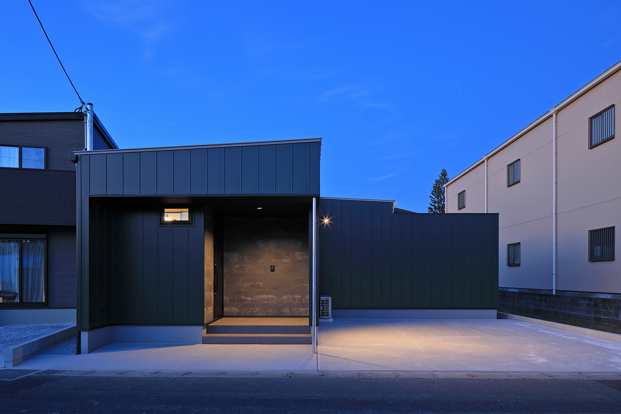 暮らしをデザインする平屋 中庭とリビングにタイルを施し、屋内外に 統一感のある洗練されたお洒落な空間を演出! 素材の質感や色合いにもこだわり上質で 心地よい雰囲気を生み出しています。 外壁は耐久性とデザイン性を兼ね備えた ガルバリウムを採用し、スタイリッシュで モダンな印象の外観に仕上げました。 コンパクトながら快適で 暮らしやすい平屋の住まいです♪